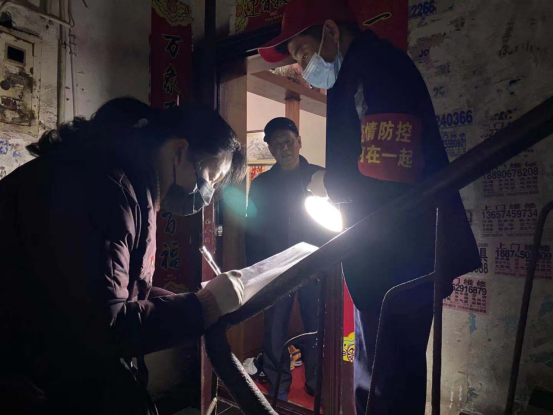 2月4日晚,板橋鋪社區黨員突擊隊再次去無人管理小區對白天不在家住戶進行排查。