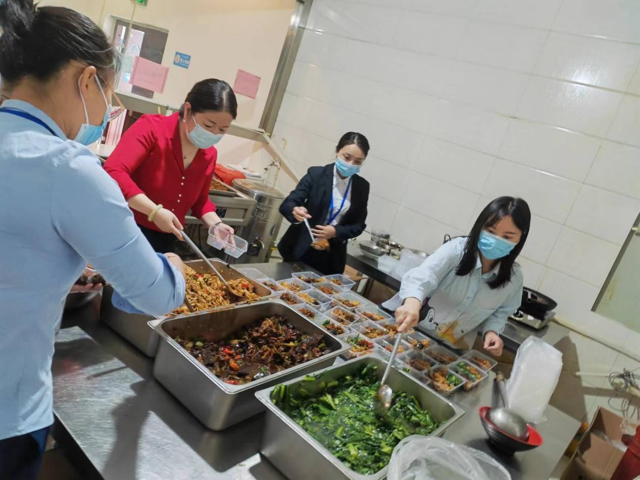 面對疫情變化,公司食堂工作人員出行受限,眼看國資系統抗疫人員,市城建投公司、市交建投公司包保社區志愿者、醫務人員和駐守大本營的守護者用餐無法保證時,市城建投公司領導率先垂范,帶領“大本營”守護者們走進食堂,紛紛化身洗菜工、切菜員、廚師、打菜員……自己動手,煮飯炒菜,打包送餐。“剛開始挺怕,壓力也大,頭一回用大型的廚房設備,挑戰兩三百人的用餐,心里在打鼓,怕操作不當,耽誤大家就餐,怕味道不好等,還是大家的鼓勵和齊心協力,讓我們圓滿完成任務。”后勤保障組工作人員笑道,“掌勺不易,還好最后大家都挺滿意”。