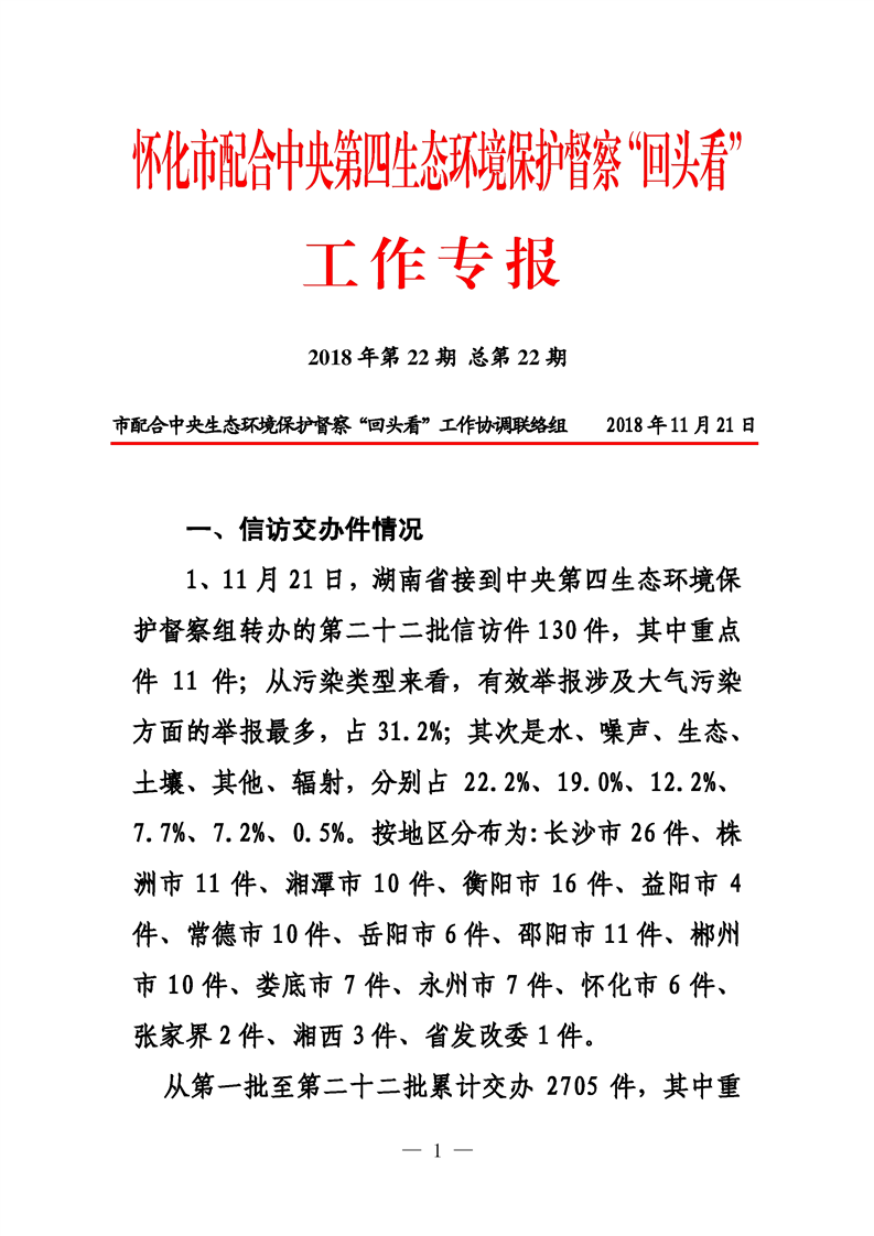 第二十二期 懷化市配合中央生態(tài)環(huán)境督察回頭看工作專報