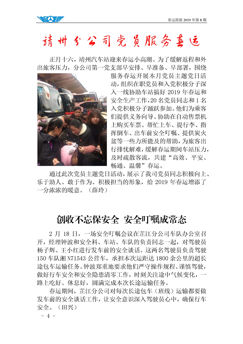 2019年湖南懷化公路運輸集團有限責任公司春運簡報(第八期)
