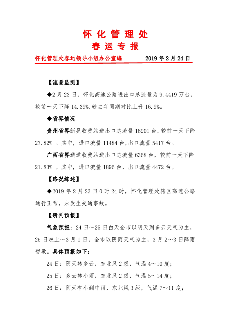 2019年懷化市高速公路春運(yùn)專報(第33期)