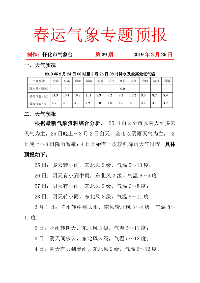 春運氣象專題預報(第39期)