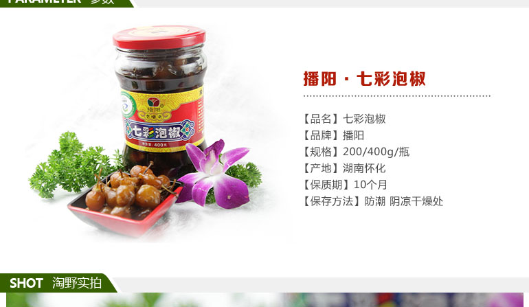 品牌: 播陽 包裝方式: 罐裝 保質期: 360天 凈重: 400g 生產許可證: QS431204017270 產品標準號: DB43/230-2009 配料表: 七彩椒、精選生抽、糖、蒜水、沙姜、八角 儲藏方法: 置于陰涼干燥處,避免陽光直射 食品添加劑: 無 產地: 湖南省 懷化市 通道侗族自治縣 |