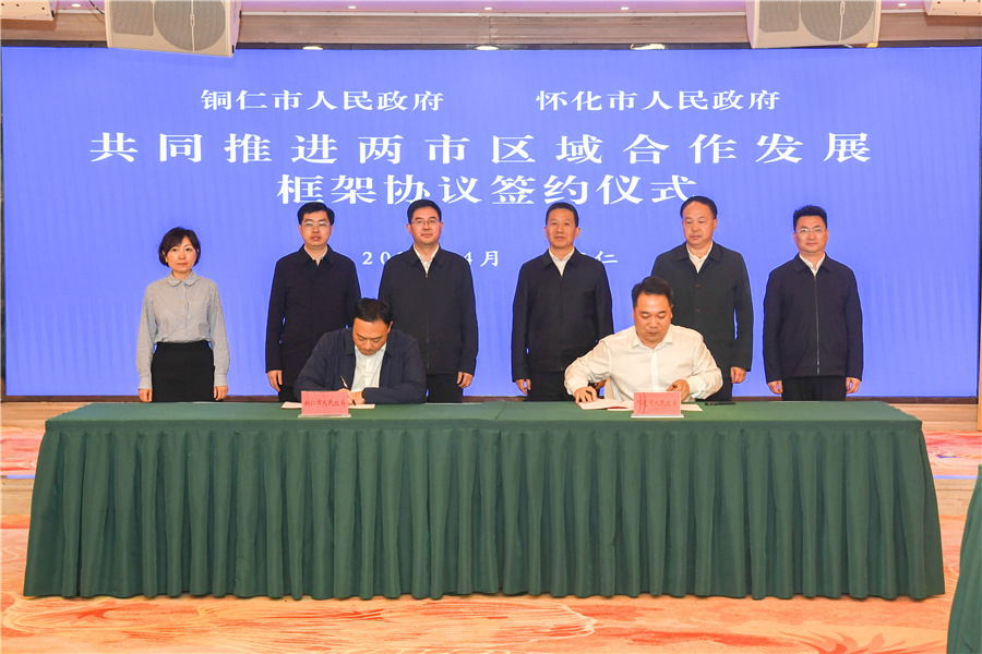 (銅仁市政府與懷化市政府簽訂共同推進兩市區域合作發展框架協議。)
