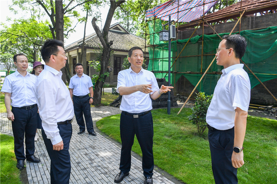 (6月13日,市委書記許忠建在洪江市、洪江區(qū)調(diào)研省旅發(fā)大會重點項目建設(shè)。圖為許忠建在洪江市安江農(nóng)耕文化旅游區(qū)了解黔陽專署舊址項目提質(zhì)改造情況。)