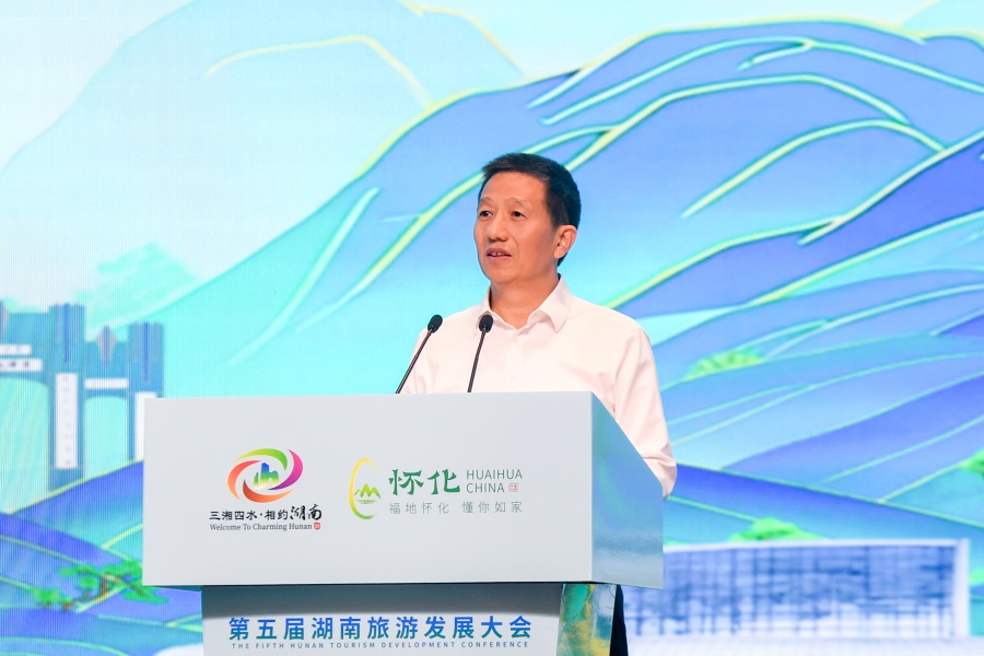 ▲9月17日上午,第五屆湖南旅游發(fā)展大會開幕,市委書記許忠建作懷化文化旅游推介。(懷化日報(bào)全媒體記者 楊智偉 攝)