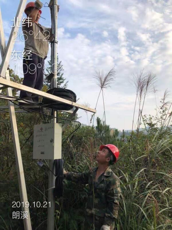 圖為10月21日,懷化聯通在靖州縣文溪鄉郞溪村民生工程施工現場進行ODF箱安裝及光纜成端