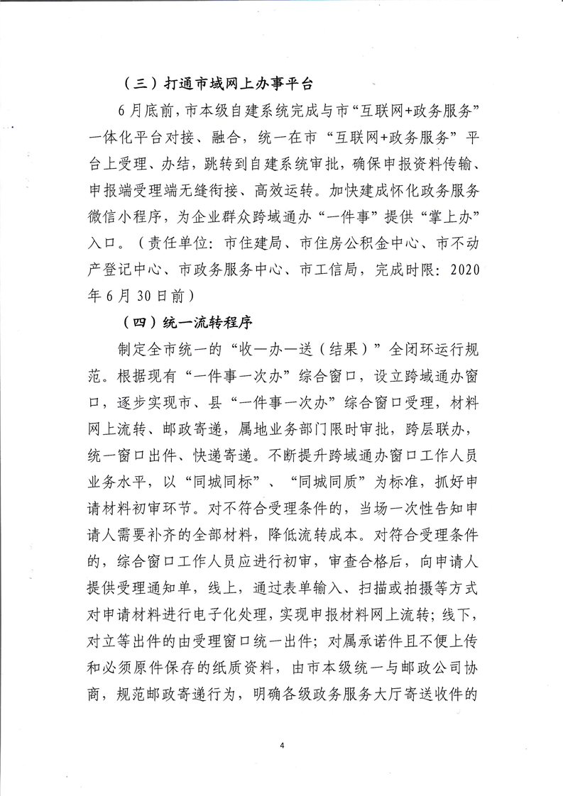 懷化市政務公開政務服務領導小組辦公室關于印發《懷化市“一件事一次辦”跨域通辦實施方案》的通知