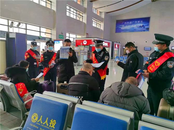 同時,宣傳民警還結合當前工作重點,在候車室、出站口、售票廳等向旅客廣泛的開展防電信網絡詐騙宣傳、愛車護路宣傳、疫情防控宣傳、防扒安全防范宣傳等相關知識,并給旅客發放了春運安全出行手冊,提醒旅客乘坐列車出行的需要注意的安全事項。