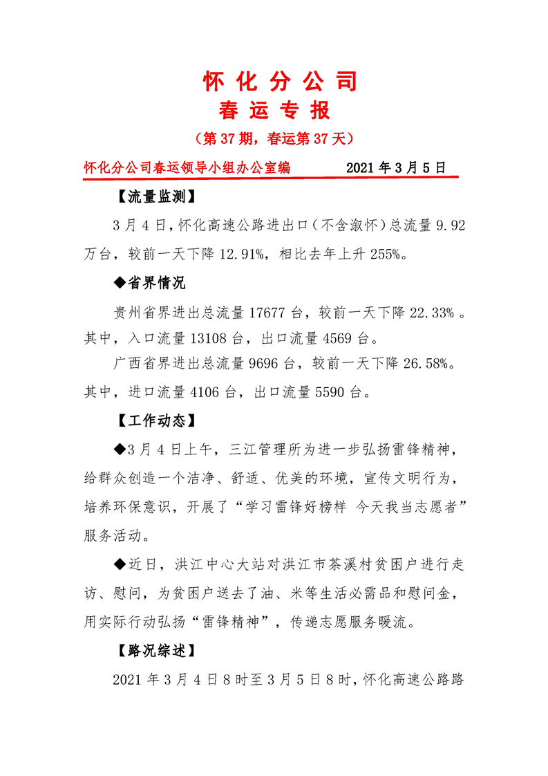 省高速集團懷化分公司第37期春運專報