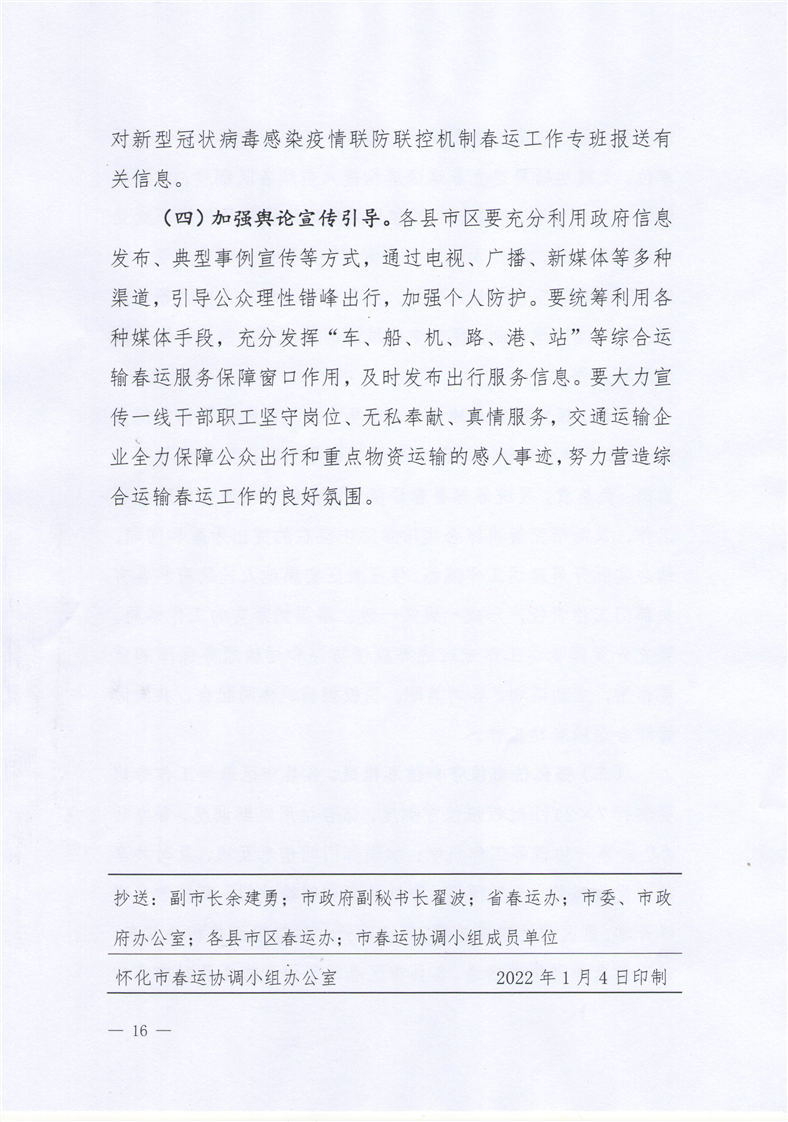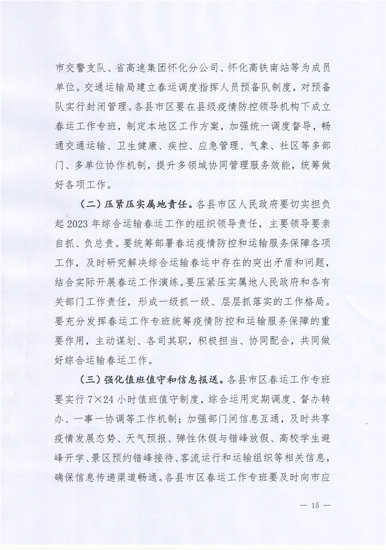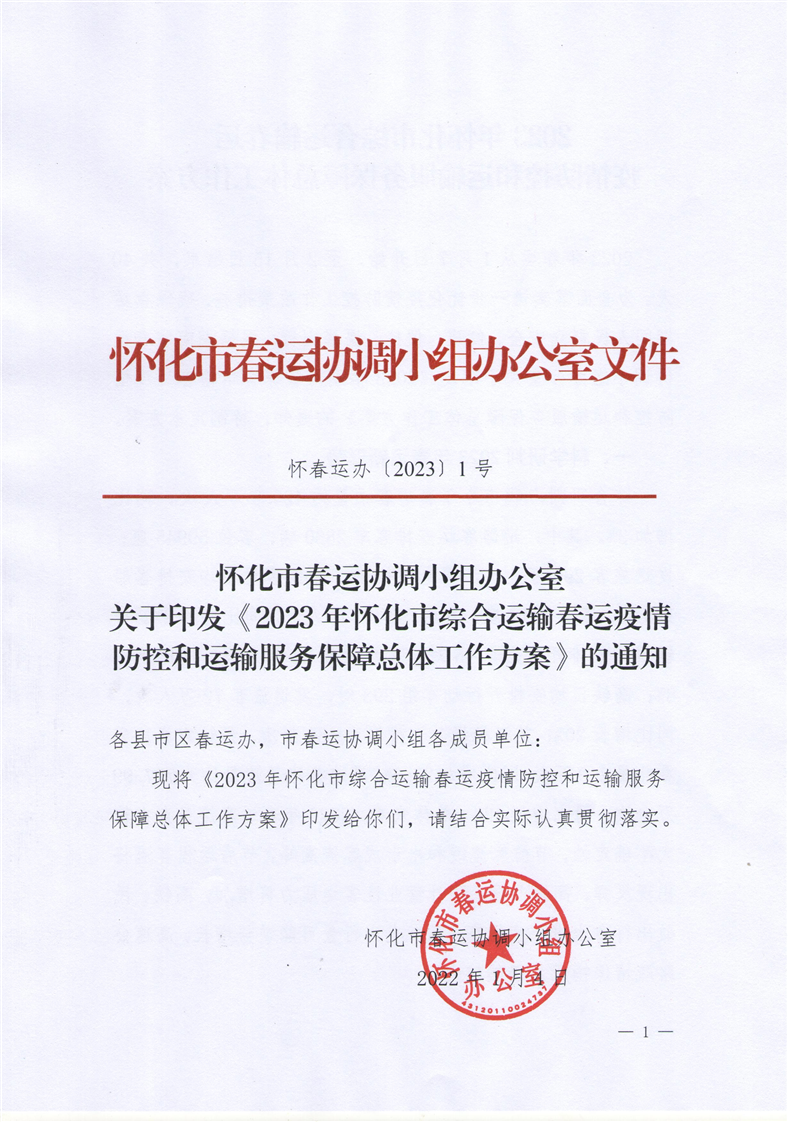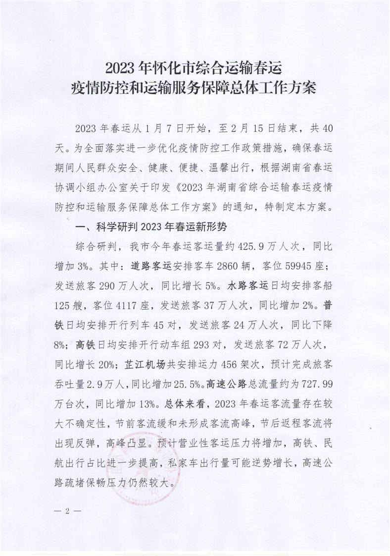 懷春運辦〔2023〕1號 關于印發《2023年懷化市綜合運輸春運疫情防控和運輸服務保障總體工作方案》的通知