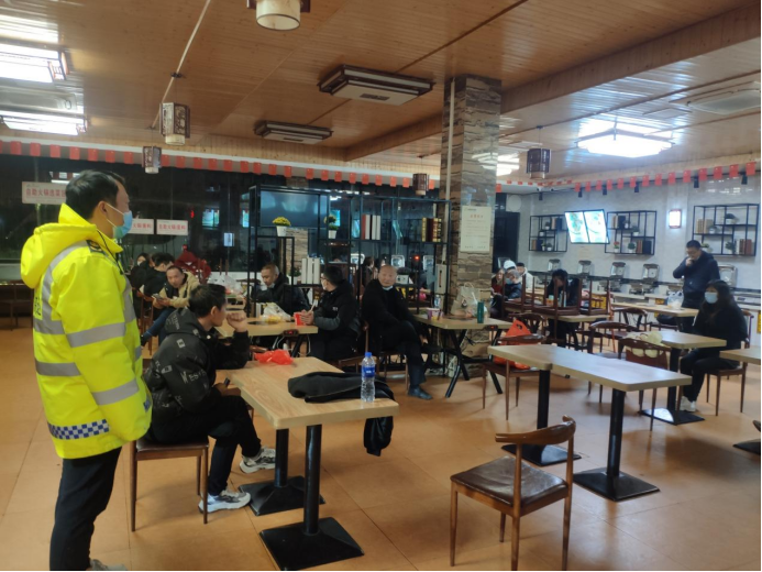 見此情況,巡查人員立即設置好警示區域,將乘客引導至安全區域,并聯系車輛救援單位和轉運車輛。此時的氣溫已經接近0℃,伴著深夜的寒風,凍得人直哆嗦。車輛由于故障無法開啟空調,乘客嘴里呼呼地哈著白汽。巡查人員立即將三位老人帶到巡邏車上取暖,同時安撫乘客情緒:“大家別著急,天這么冷,我們先帶大家到芷江服務區避寒、休息”。