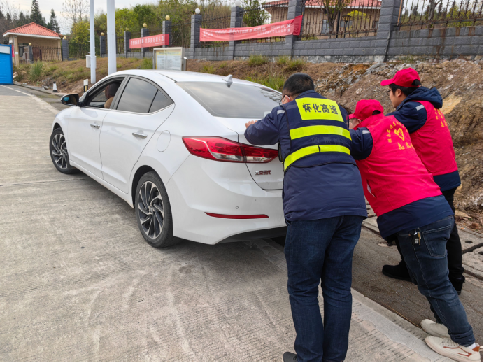 大年初二,在江市收費站,一輛小轎車因燃油耗盡,無法啟動。由于身處異地司機臉上寫滿了焦慮與不安。收費站工作人員發現司機的難處后, 合力把車推至收費廣場安全區域。隨后帶駕駛員到附近加油站購買汽油,并幫助司機加上汽油,重新踏上旅途。