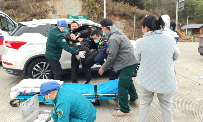 大年初一上午,一輛粵B越野車通過萬佛山收費站時,駕駛員向收費站工作人員尋求幫助。原來,車上一位老人突發疾病,面色蒼白,表情痛苦,無法正常交流。收費班長了解情況后,立馬撥打120,同時將車輛引導到安全區域。十幾分鐘后,醫護人員趕到現場,收費班長協助醫護人員將暈厥老人抬上救護車送往醫院接受治療。