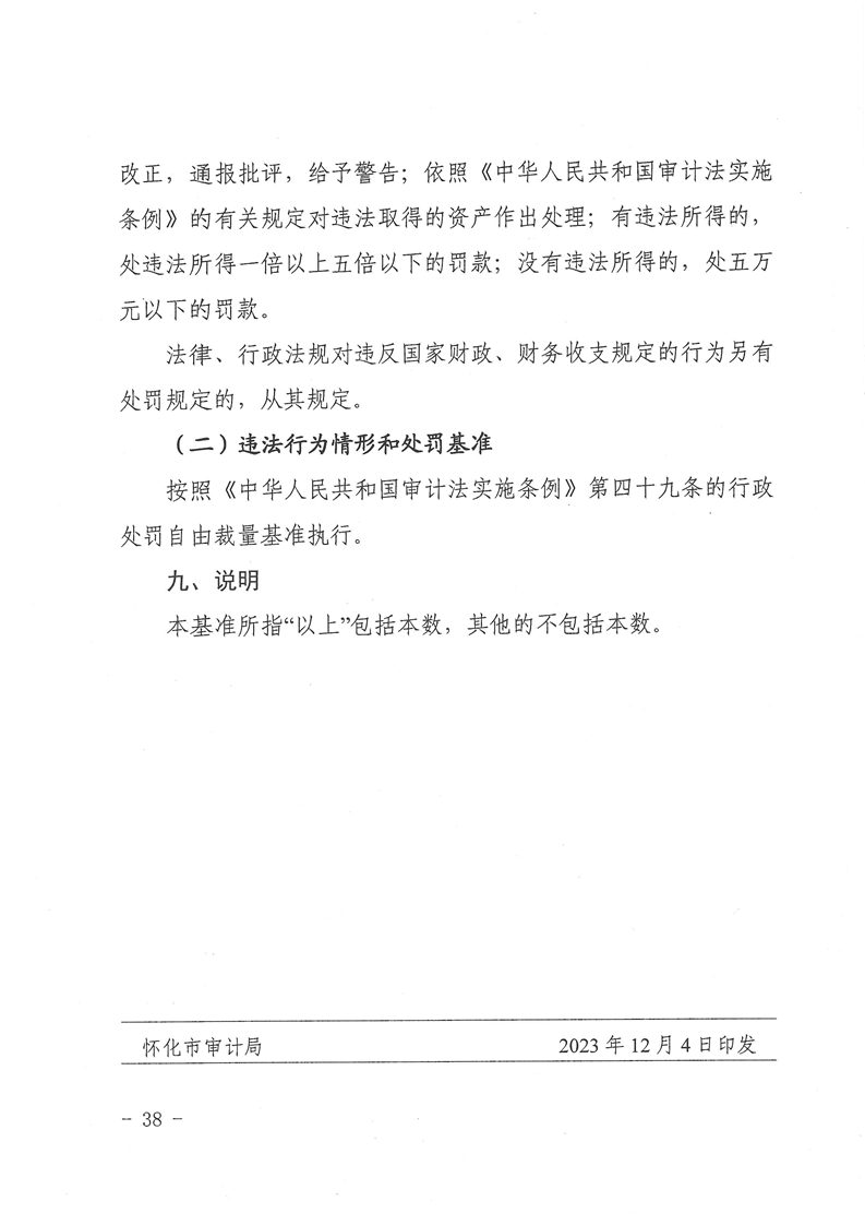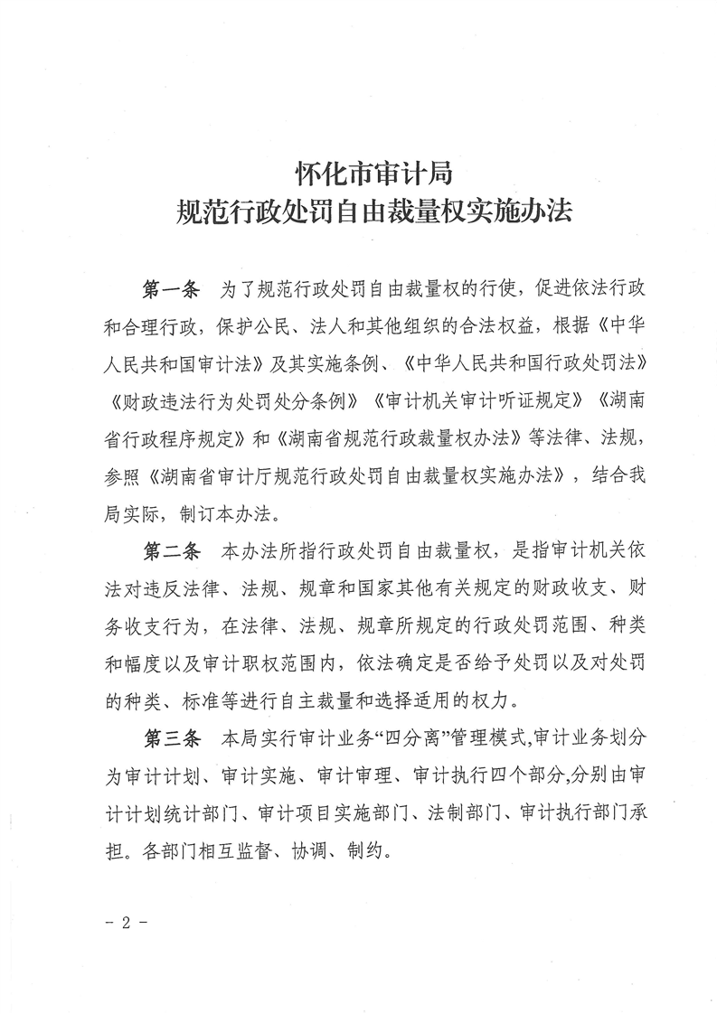 懷化市審計局關于印發《懷化市審計局規范行政處罰自由裁量權實施辦法》的通知