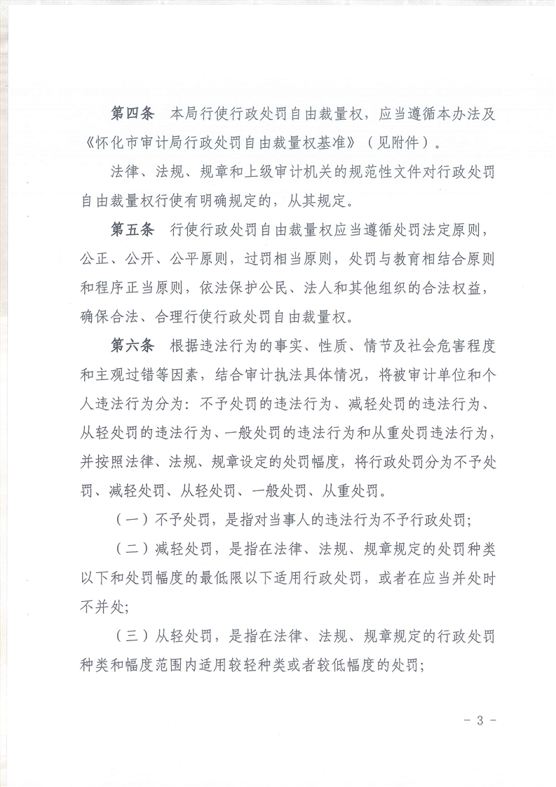 懷化市審計局關于印發《懷化市審計局規范行政處罰自由裁量權實施辦法》的通知