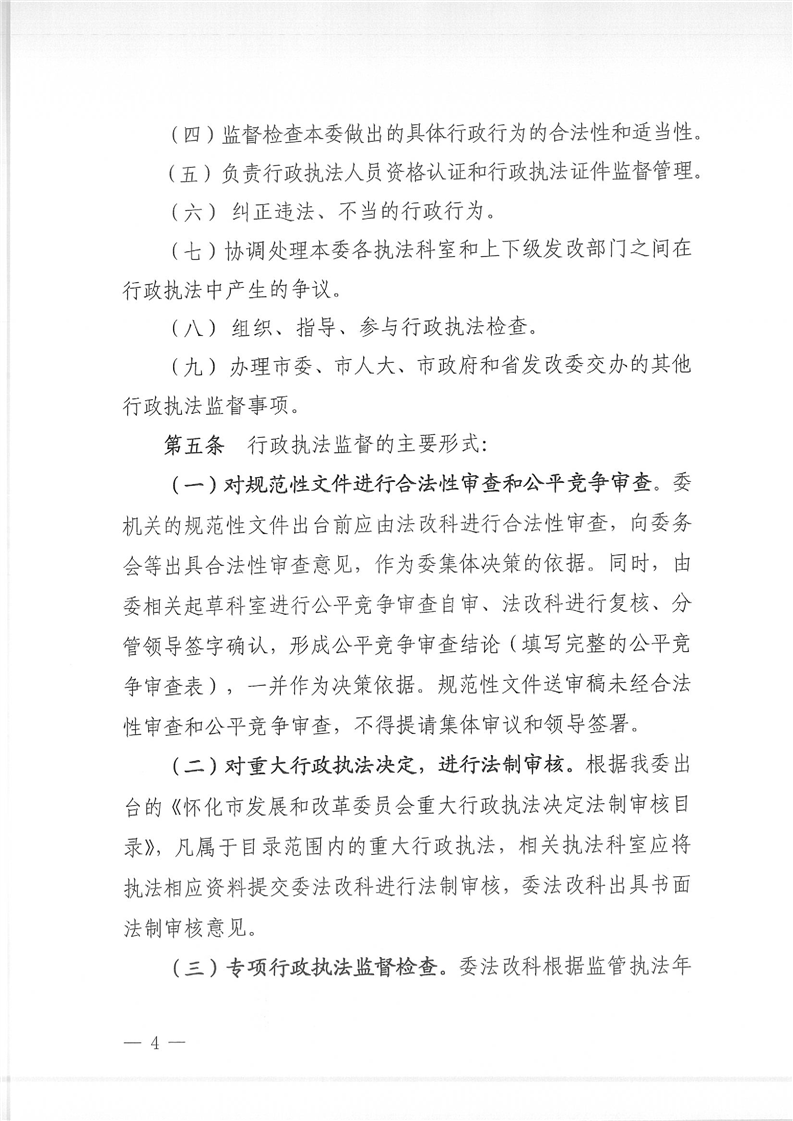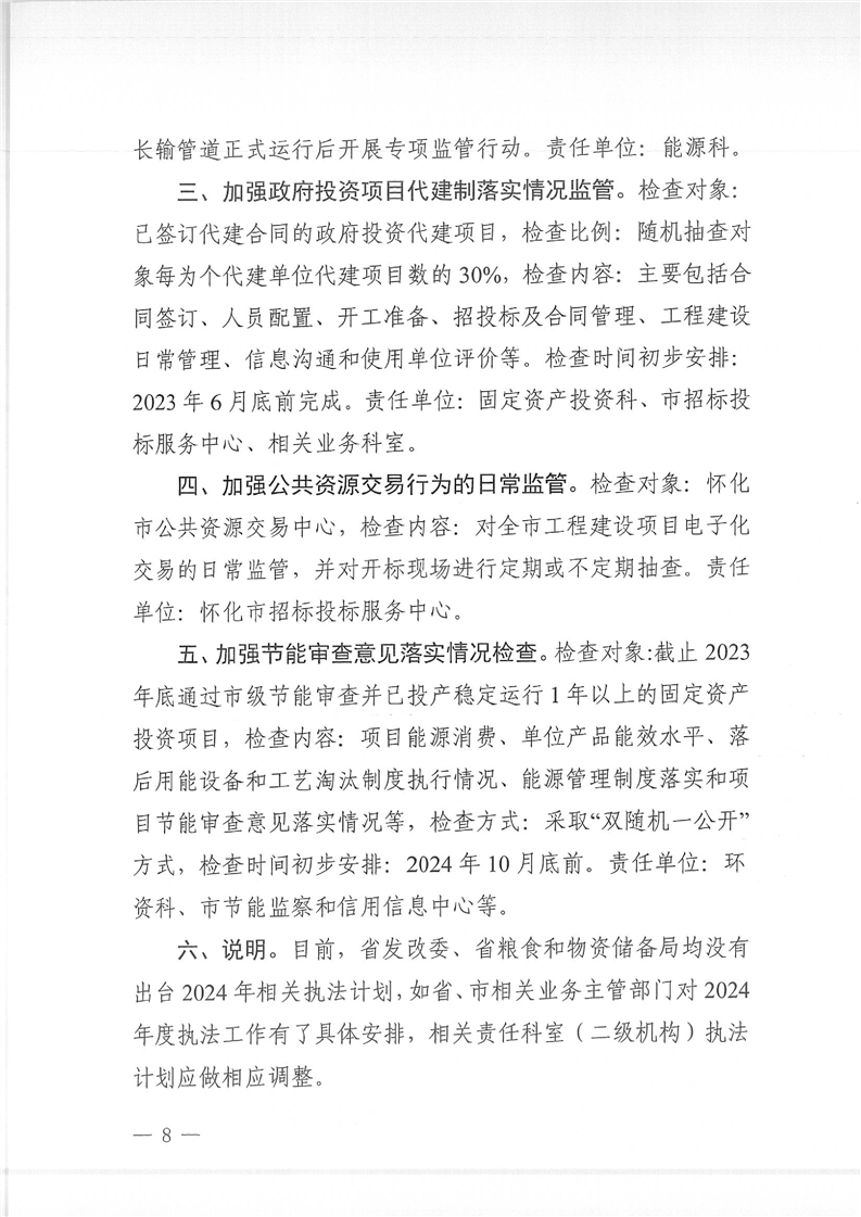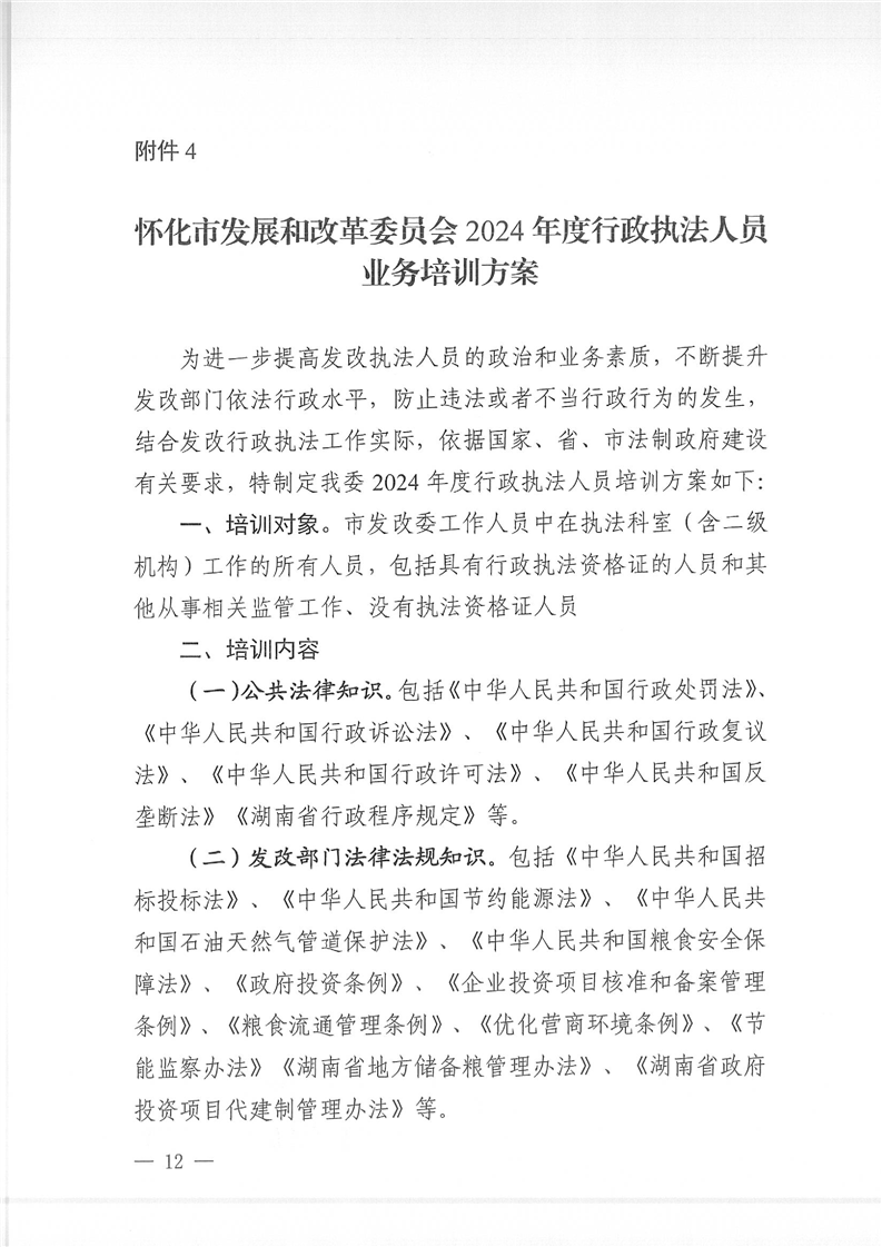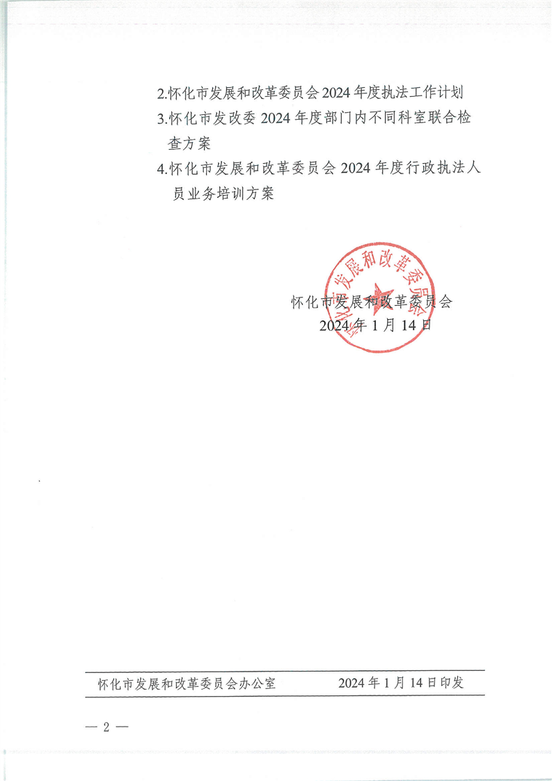 關于印發懷化市發改委《行政執法監督檢查制度》、《2024年度執法工作計劃》、《2024年度部門內不同科室聯合檢查方案》、《2024年度行政執法人員業務培訓方案》的通知