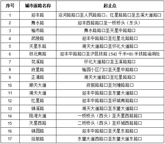 根據懷化城區機動車違法停車管理工作及城區部分道路更名的實際情況,為規范城區道路違法停車整治工作,現將平安路、云集路等2條機動車違法停車行為嚴格管理路段調整為非嚴格管理路段,迎豐路、順天大道部分路段做優化調整,環城東路、高堰路、舞陽大道予以更名。城區調整后的嚴格管理路段如下: