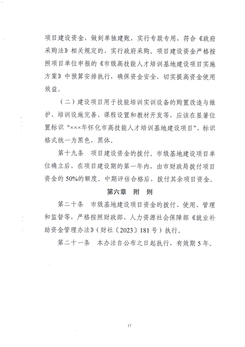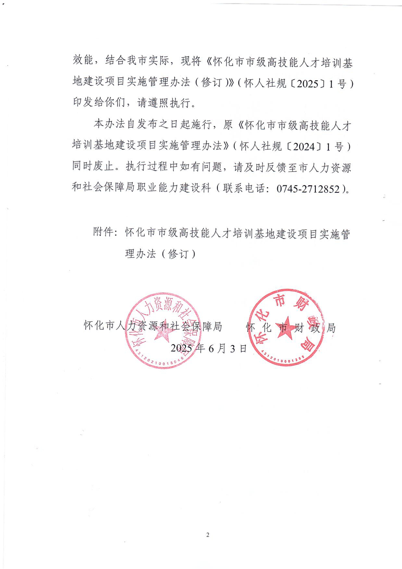 關于印發《懷化市市級高技能人才培訓基地建設項目實施管理辦法(修訂)》的通知