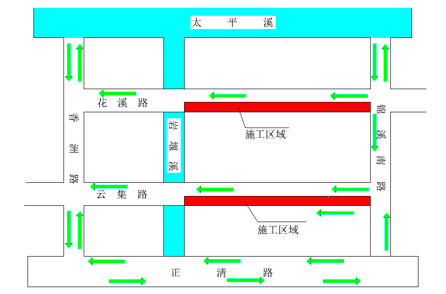 2、花溪路(錦溪南路至巖堰溪)進入南側小區、道路的車輛錦溪南路繞行至云集路;